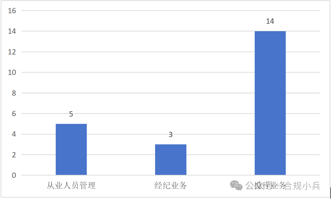 (四)2025年3月,从业务类型看,涉及投行业务14张,经纪业务3张,从业人员管理5张。具体如下图:图四:处罚事项业务类型分布