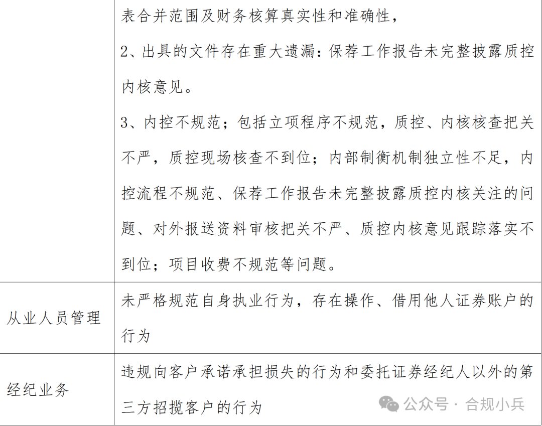 二是投行业务处罚事由除尽职调查、信息披露相关以外,新增有关内控相关的处罚,对于证券公司内部制衡机制独立性、立项程序规范性,质控内核意见跟踪落实情况和披露情况,项目收费不规范等问题提出了更高的要求。